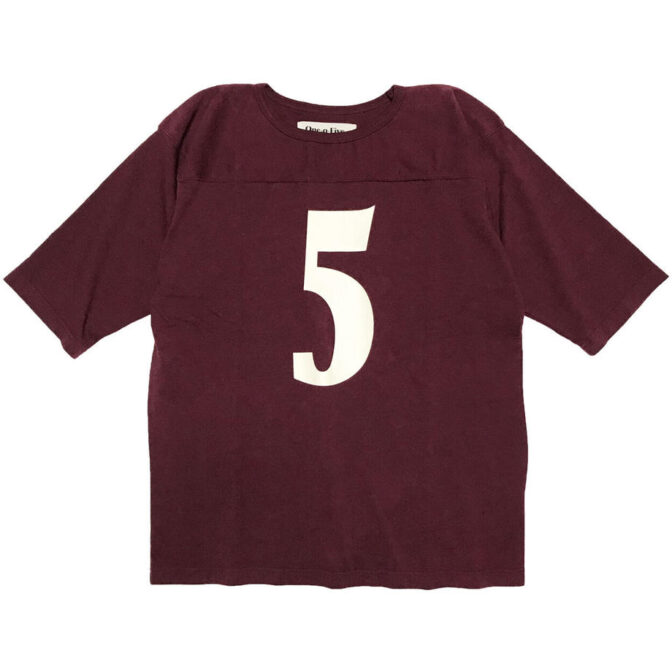 ブランドネームに纏わるクラシックフォントのナンバーをプリントしたフットボールTシャツ。