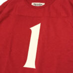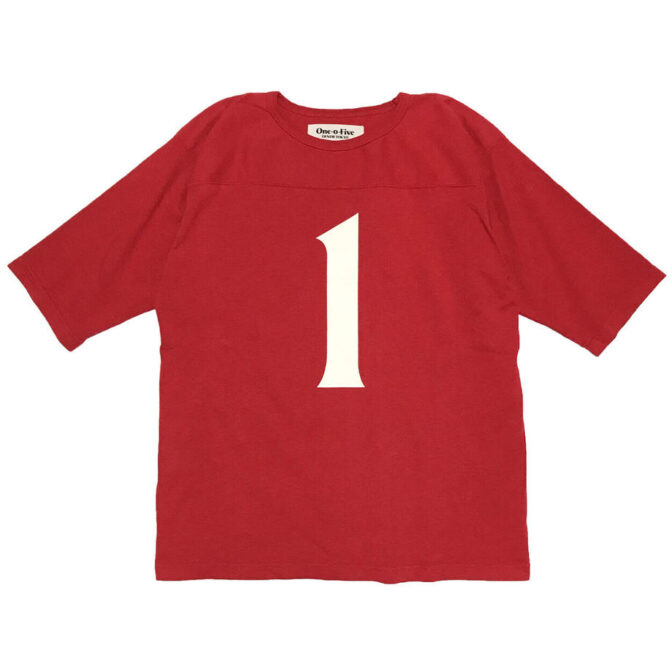 ブランドネームに纏わるクラシックフォントのナンバーをプリントしたフットボールTシャツ。